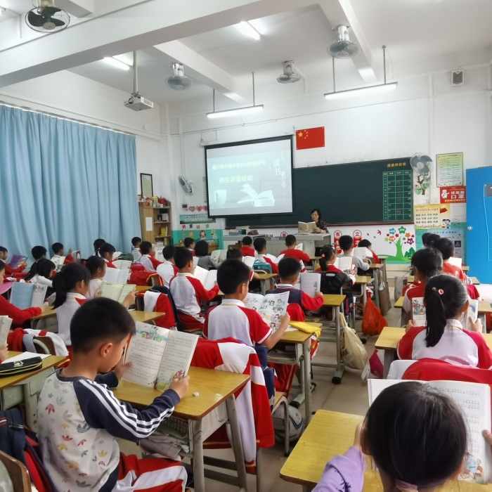 捧起書本,就是捧著一個偉大的思想,翻開書頁,就是翻動一個精神的海洋。5日下午最后一節(jié)課,學(xué)校舉行師生共讀活動,班級里靜悄悄的,孩子們在書海中盡情遨游,時而會心一笑,時而蹙眉嘆氣,時而掩卷沉思……閱讀中,孩子們都能靜下心來,沉溺在書的世界中,靜靜享受這美妙的閱讀時光。共讀,讓孩子們學(xué)會了閱讀,學(xué)會了思考,學(xué)會了成長。愿中南的校園時時飄逸著書香,愿師生共讀能成為校園里一道亮麗而永恒的風(fēng)景線。