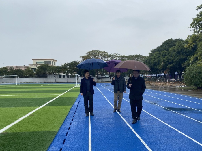 2021年12月27日上午,港口鎮(zhèn)副鎮(zhèn)長易昊宏、教體文旅局后勤專干孫偉鋒蒞臨中南小學,在學校校長黃權炎的陪同下開展調研工作,易鎮(zhèn)長和孫專干到學校便直奔新運動場方向查看建設情況,對運動場落實情況進行實地查看,仔細查看了運動場的排水口、跑道面層塑料、人工草皮等區(qū)域,并對塑膠跑道的道牙不夠顯眼給出了針對性建議,要求學校把好安全關,對中南小學在運動場建設的工作表示肯定。