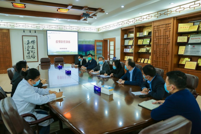 疫情防控醫(yī)療保障組、消毒組、安全后勤保障組、信息聯(lián)絡(luò)組、宣傳和心理疏導(dǎo)組等各小組相關(guān)負(fù)責(zé)人員到校長(zhǎng)室開(kāi)會(huì)。會(huì)議對(duì)目前出現(xiàn)的情況進(jìn)行分析與工作部署。