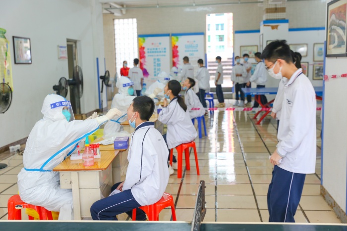 3月18日中山市火炬開發(fā)區(qū)發(fā)現(xiàn)新疫情以來,廣東博文學(xué)校立即響應(yīng)上級(jí)新冠肺炎疫情防控指揮部要求,在學(xué)校黨支部及學(xué)校領(lǐng)導(dǎo)的帶領(lǐng)下,做好各項(xiàng)疫情防控工作,積極主動(dòng)多次為校內(nèi)師生進(jìn)行核酸檢測采樣。