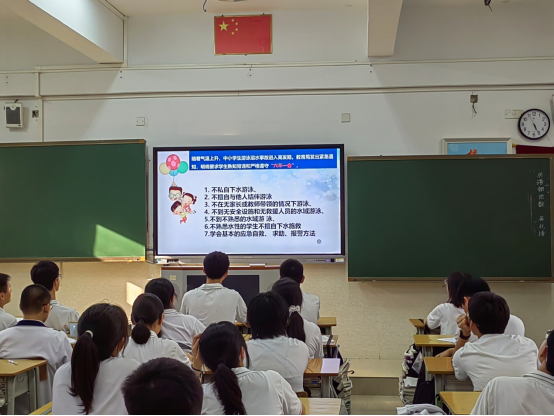 接著,各班主任們或以溺水教育視頻進(jìn)行導(dǎo)入,以我國(guó)每年因溺水喪失生命的案例數(shù)據(jù)對(duì)同學(xué)們進(jìn)行安全教育,引導(dǎo)學(xué)生探討溺水的原因和梳理總結(jié)自救、急救的方法。