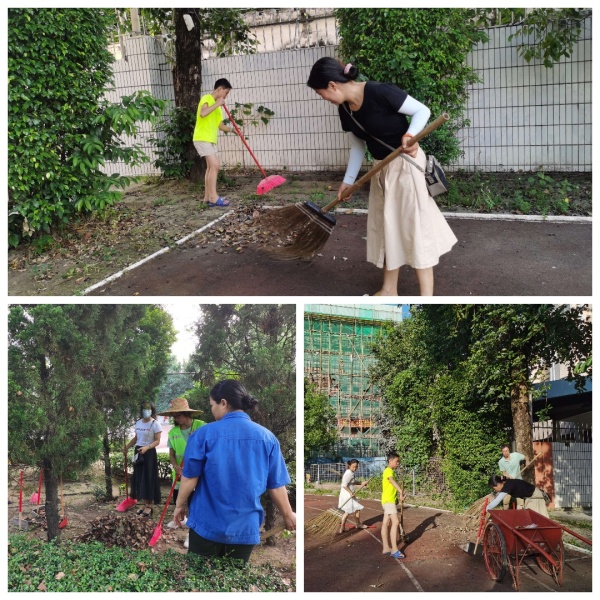 古鎮(zhèn)鎮(zhèn)海洲第二小學的家長志愿者團隊,一直是學校的一大“招牌”。本次清潔活動志愿者們踴躍參與,幫忙清潔校園及圍墻周邊的衛(wèi)生工作。海洲第二小學的黨員教師、團員教師也發(fā)揮帶頭作用,與家長志愿者們一起團結(jié)合作清潔校園。同志們干勁十足,拔草的拔草,修枝的修枝,掃垃圾的掃垃圾,分工明確,配合默契。清潔活動現(xiàn)場,大家擼起袖子,甩開膀子,相互配合,干得熱火朝天,汗水見證著他們的勤勞與堅韌,他們是海洲第二小學最美的創(chuàng)文人。寶墨園里,黨支部陳富權(quán)書記及各支委身先士卒,帶領(lǐng)著志愿者和同學們像一只只辛勤的小蜜蜂,在花叢里奔忙清掃落葉枯枝;操場田徑場上,黨員教師、團員教師和家長志愿者們頂著烈日仔細清掃落葉和塑料袋;停車場中,一個個衛(wèi)生死角都被徹底清潔。
