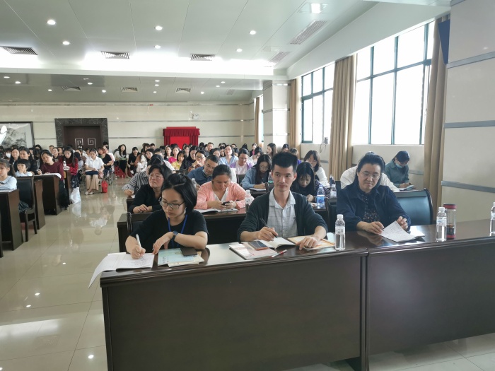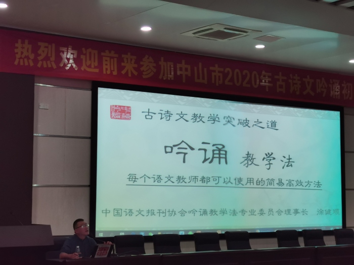 此次研修為期四天,共分兩個階段。第一個階段是吟誦理論學習,著名吟誦專家,中華吟誦學會秘書長、首都師范大學副教授、碩士生導師—徐健順教授給老師們作了《吟誦教學法》的專題講座。徐教授在講座中引經(jīng)據(jù)典,層層滲透,并且不斷鼓勵老師們大膽用自己的聲音詮釋文章的意義和精神內(nèi)涵。老師們認真聆聽,學習依字行腔、依義行調、平長仄短、平低仄高、入短韻長的吟誦規(guī)則,現(xiàn)場通過手之舞之,足之蹈之,親身感受古詩文的魅力和聲音的韻律。
