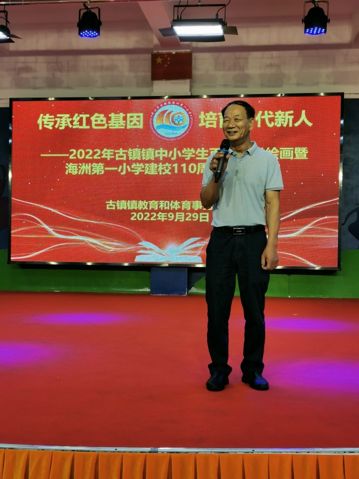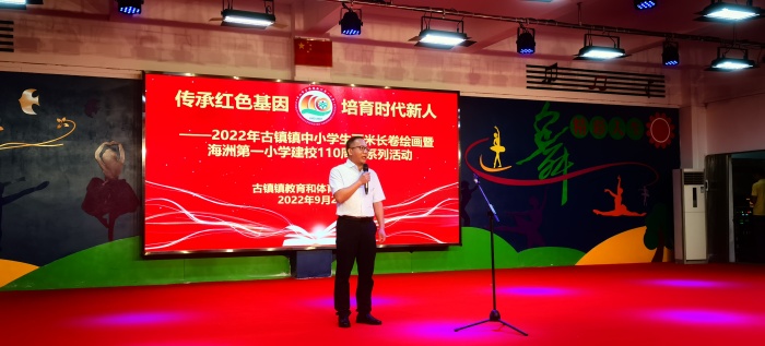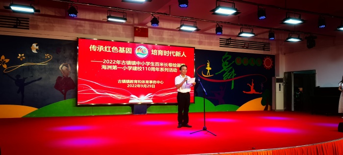 描百載春華,繪今朝蓬勃。2022年中山市古鎮(zhèn)鎮(zhèn)海洲第一小學(xué)迎來(lái)110周年校慶,2022年9月29日,在百年老校華誕之際,古鎮(zhèn)鎮(zhèn)海洲第一小學(xué)舉辦了“傳承紅色基因 培育時(shí)代新人”古鎮(zhèn)鎮(zhèn)中小學(xué)百米長(zhǎng)卷繪畫(huà)活動(dòng)。參加本次活動(dòng)的有古鎮(zhèn)鎮(zhèn)教育和體育事務(wù)中心林梗卿副主任,古鎮(zhèn)鎮(zhèn)教育和體育事務(wù)中心孔國(guó)范干事,古鎮(zhèn)鎮(zhèn)書(shū)畫(huà)協(xié)會(huì)何錦垣會(huì)長(zhǎng)以及各小學(xué)參與活動(dòng)的師生。