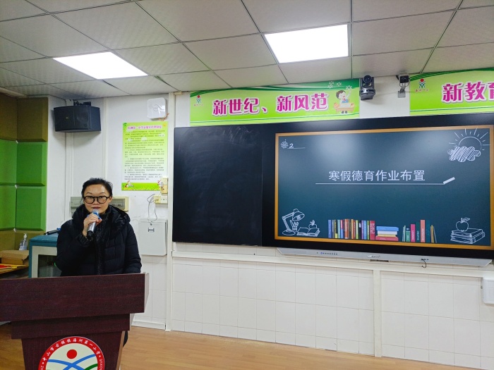 寒假是同學(xué)們德智體美勞全面發(fā)展的好時機(jī),雖然寒假不用上學(xué),但是同學(xué)們也不能浪費(fèi)自我提升的機(jī)會,所以第二個環(huán)節(jié)由鄧苑甜主任進(jìn)行寒假德育作業(yè)的布置,讓同學(xué)們在寒假中有方法地提升自己。鄧主任從生活常識、安全教育、健康心態(tài)、閱讀方式、時間管理、勞動實(shí)踐六個角度對同學(xué)們提出作業(yè)要求,并且貼心地給予行動指引,讓每一位同學(xué)都能清晰自己需要完成的任務(wù)。