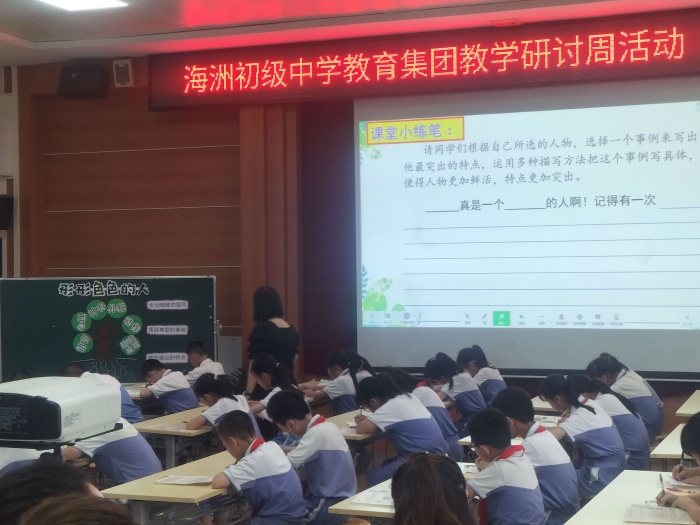 課例展示后,由海洲片三位語文科組長以及兩位上課的老師有針對(duì)性地圍繞“新課標(biāo)下的習(xí)作如何教學(xué)”進(jìn)行沙龍研討。甘泳琪老師進(jìn)行反思后,參與研討的老師圍繞”聚焦學(xué)習(xí)任務(wù)群,重構(gòu)習(xí)作設(shè)計(jì)”的話題,針對(duì)甘老師的課進(jìn)行評(píng)課、議課,他們對(duì)甘泳琪老師的課堂教學(xué)進(jìn)行了高度的評(píng)價(jià)的同時(shí)也提出了自己獨(dú)特的見解。