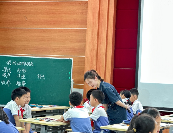海洲第一小學(xué)甘泳琪老師在團(tuán)隊(duì)的共同研磨下,展示四年級(jí)上冊(cè)第四單元習(xí)作課例《我的動(dòng)物朋友》。甘泳琪老師在習(xí)作教學(xué)中先以單元習(xí)作例文切入,創(chuàng)設(shè)了三個(gè)情境,引導(dǎo)學(xué)生留心觀察小動(dòng)物的外形、習(xí)性、趣事等特點(diǎn),對(duì)典型事例進(jìn)行具體的描寫。本次執(zhí)教中,甘泳琪老師課堂教學(xué)中最大的亮點(diǎn)在于,當(dāng)學(xué)生介紹情境中的動(dòng)物朋友時(shí),及時(shí)捕捉學(xué)生語言描述的生動(dòng)性,強(qiáng)化學(xué)生的情感體現(xiàn),從語言描述中捕捉體現(xiàn)親密關(guān)系、朋友情誼的詞或句,為后面的動(dòng)筆做好鋪墊。