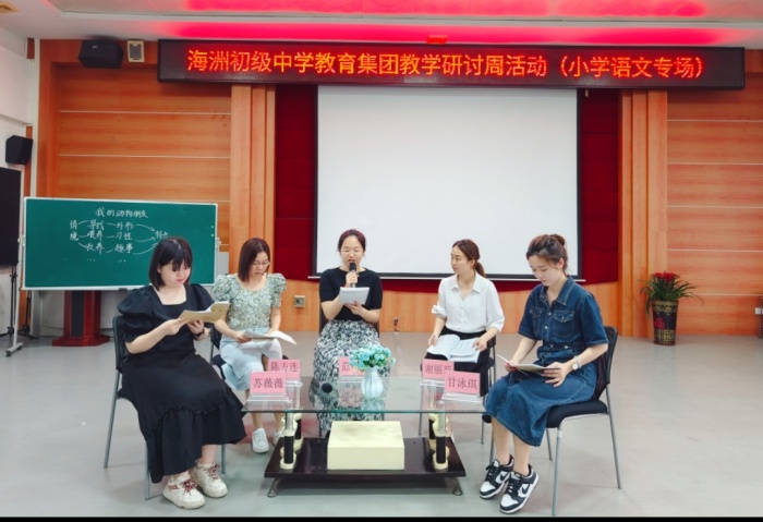 “彩筆凌云畫溢思,虛心勁節(jié)是吾師?!焙V奁W(xué)語文的同仁們?cè)诨顒?dòng)中受益匪淺,凝心聚力,讓“研”服務(wù)于“教”,相信未來的小學(xué)語文學(xué)習(xí)任務(wù)群活動(dòng)定能碰撞出更絢麗的火花,相信海洲片集團(tuán)化的教研活動(dòng)會(huì)不斷夯實(shí)!