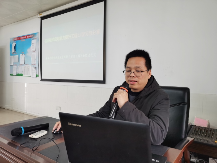 活動伊始,學校副校長朱劍鋒就舉行這次活動的背景、意義進行簡要地概述,并對老師們提出四點要求:一、根據鎮(zhèn)南小學的具體實際,由教導處統(tǒng)籌信息技術應用能力提升的實施方案;二、各科組根據學科的特點,開展以主題式任務為基點的信息技術應用能力提升活動;三、信息技術應用能力提升應覆蓋全學科,全體教師要提高認識和站位,提高個人應用水平;四、呼吁全體教師在自主研修學習的基礎上學有所成、學以致用,提升個人信息技術應用教學的效果,服務于教學。