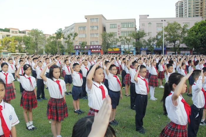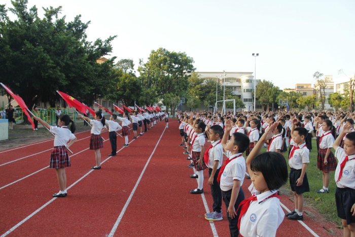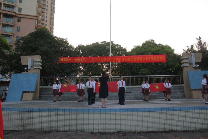 10月11日下午,全體輔導(dǎo)員和少先隊(duì)員集中在升旗臺(tái)前舉行了“請黨放心,強(qiáng)國有我——喜迎中山市第八次少代會(huì)鎮(zhèn)南小學(xué)少先隊(duì)微儀式”活動(dòng)。