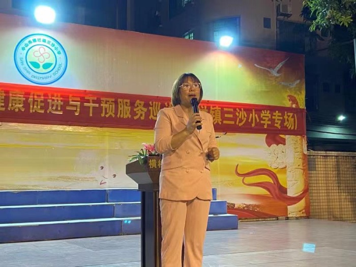 隨后,三沙小學馮紅燕校長致辭。馮紅燕對上一學年全校師生在省級、市級、鎮(zhèn)級等各種競賽中取得的成績進行了總結,并且介紹了學校基本概況和學校的發(fā)展方向及規(guī)劃,展現(xiàn)了三沙小學良好的辦學質量和精神風貌。