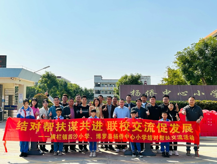 2023年2月23日,在這個(gè)明媚的春日里,為深入貫徹落實(shí)《廣東省教育廳關(guān)于做好全口徑全方位融入式幫扶粵東粵西粵北地區(qū)基礎(chǔ)教育高質(zhì)量發(fā)展工作的通知》的文件精神,進(jìn)一步推進(jìn)中山市橫欄鎮(zhèn)四沙小學(xué)與惠州市博羅縣楊僑中心小學(xué)對(duì)口幫扶活動(dòng),深化兩校之間的合作交流,共同提高學(xué)校的管理水平和提升教學(xué)質(zhì)量,橫欄鎮(zhèn)四沙小學(xué)副校長(zhǎng)盧福棠帶領(lǐng)四沙小學(xué)行政代表、名師、骨干老師代表、家委會(huì)領(lǐng)導(dǎo)代表一行20人到博羅縣楊僑中心小學(xué)開(kāi)展幫扶交流活動(dòng)。