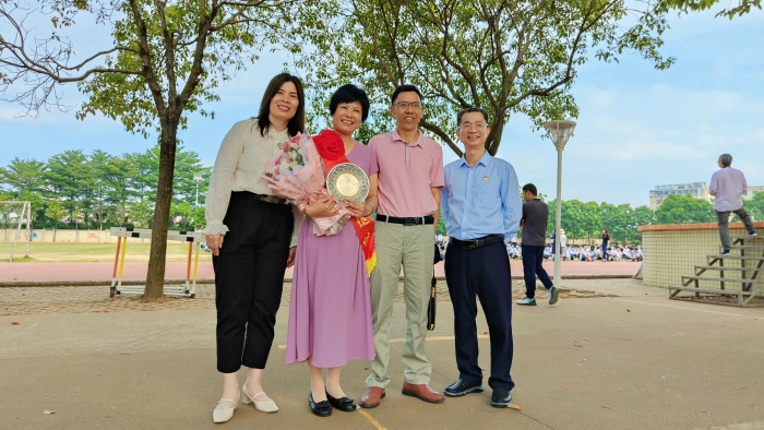 桃李滿天下,春暉遍四方。陽(yáng)春三月,桃李飄香!4月11日上午,在于汝葉老師榮譽(yù)退休之際,學(xué)校工會(huì)在升旗儀式全校師生齊聚一堂的歡慶時(shí)刻,特為她舉行簡(jiǎn)單而隆重的歡送儀式,對(duì)于老師多年來(lái)對(duì)橫欄鎮(zhèn)教育事業(yè),以及對(duì)學(xué)校的無(wú)私奉獻(xiàn),表示崇高的敬意和衷心的感謝!
