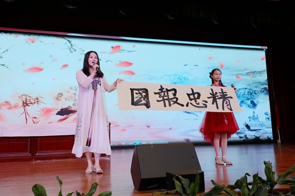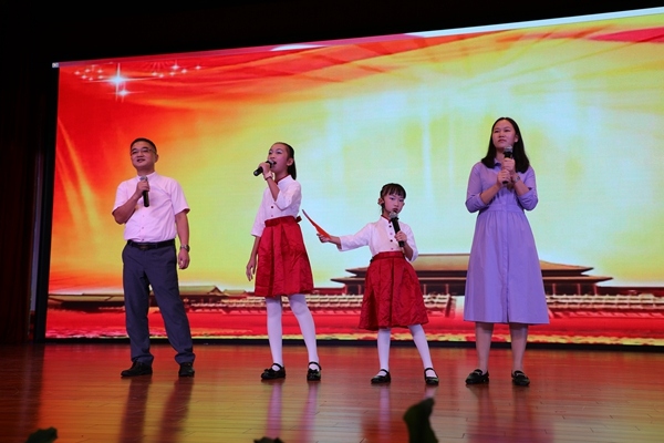 本次比賽由朱漢釗同學(xué)主持,7名年級(jí)家委和老師共同擔(dān)任評(píng)委。共有7名選手參賽,選手們以《志存高遠(yuǎn),少年強(qiáng)國(guó)》《中國(guó)心,永不眠》國(guó)歌情懷等為主題。比賽中,每位選手激情昂揚(yáng),自信滿滿,他們用自己真摯的情感、激昂的文字,贊美了中國(guó)人民在抗擊新冠疫情中同心協(xié)力、共渡難關(guān)的偉大壯舉,歌頌了偉大祖國(guó)的日新月異和繁榮富強(qiáng),暢談了在祖國(guó)母親的哺育下茁壯成長(zhǎng)的感受,抒發(fā)了少年兒童對(duì)偉大祖國(guó)的無(wú)限熱愛(ài),表達(dá)了自己為祖國(guó)美好的明天而努力奮斗的愿望。除此之外,7位參賽選手的家人也來(lái)到了現(xiàn)場(chǎng)為自己的孩子加油鼓氣。他們或揮毫潑墨,或深情朗誦,或用歌聲去傳遞那份濃濃的愛(ài)。隨后,六年級(jí)師生同臺(tái)朗誦《我們愛(ài)你啊,祖國(guó)》,表達(dá)純真的愛(ài)國(guó)情懷。而大合唱國(guó)歌和《我和我的祖國(guó)》更是把現(xiàn)場(chǎng)氣氛推向了高潮。師生們、家委們揮動(dòng)著自己手中的小紅旗,用歌聲去贊美祖國(guó)。整個(gè)會(huì)場(chǎng)洋溢著濃濃的愛(ài)國(guó)情。