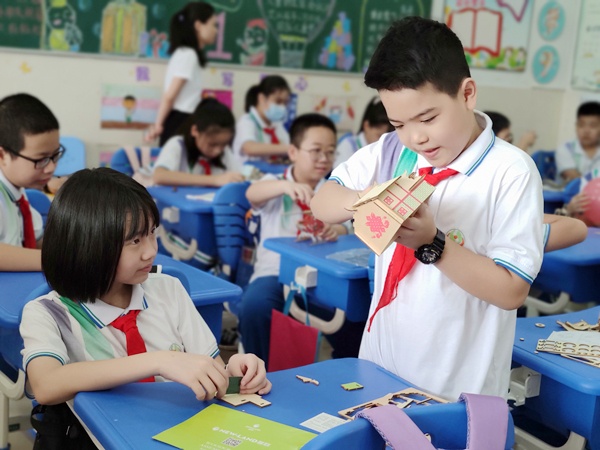 6月1日這一天,校園布置充滿童趣,彌漫著歡樂的氣氛,笑容洋溢在每個孩子天真稚嫩的臉上。升旗儀式結(jié)束后,令人期待的是一系列的體育娛樂活動,每一項游戲活動前都人頭攢動,每一項體育活動都激情澎湃,每一項文娛活動都才藝飛揚???,雙腳夾球投籃游戲,考驗的是學生的平衡能力和彈跳力,只見雙腳夾緊球,使勁向上一蹦,球就投進籃子里,孩子們高興得手舞足蹈;盲人貼鼻子游戲,誤打誤撞,讓人忍俊不禁???,運動場上,往返接力跑,同學們你追我趕,考驗團隊協(xié)作能力;齊心協(xié)力滾籃球,同學們相互配合,共度“難關(guān)”;輕松跳大繩活動,同學們宛如穿梭的燕子;籃球場上,高年級使出渾身解數(shù),呈現(xiàn)出一場場精彩紛呈的團體籃球賽???,班級文藝活動,同學們有的高歌一曲,盡情抒發(fā)內(nèi)心的歡愉;有的玩轉(zhuǎn)魔方,一展身手;有的參加樂趣拼裝,腦力與手工結(jié)合,創(chuàng)意十足?;顒映浞终故玖巳A附小學子多才多藝、全面發(fā)展、積極向上的陽光氣質(zhì),活動熱度不斷推向高潮?;顒游猜暤摹八投Y物”環(huán)節(jié)更是為活動畫上圓滿的句號。