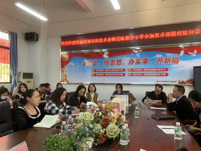 新沙小學(xué)冼鳳蘭主任主持本次活動(dòng)。葉景乾校長(zhǎng)為活動(dòng)致歡迎辭,葉校長(zhǎng)非常感謝黃圃鎮(zhèn)美術(shù)教研組給予學(xué)校作為活動(dòng)承辦單位的機(jī)會(huì),高度贊揚(yáng)課題主持人的科研能力和課題研究成果。