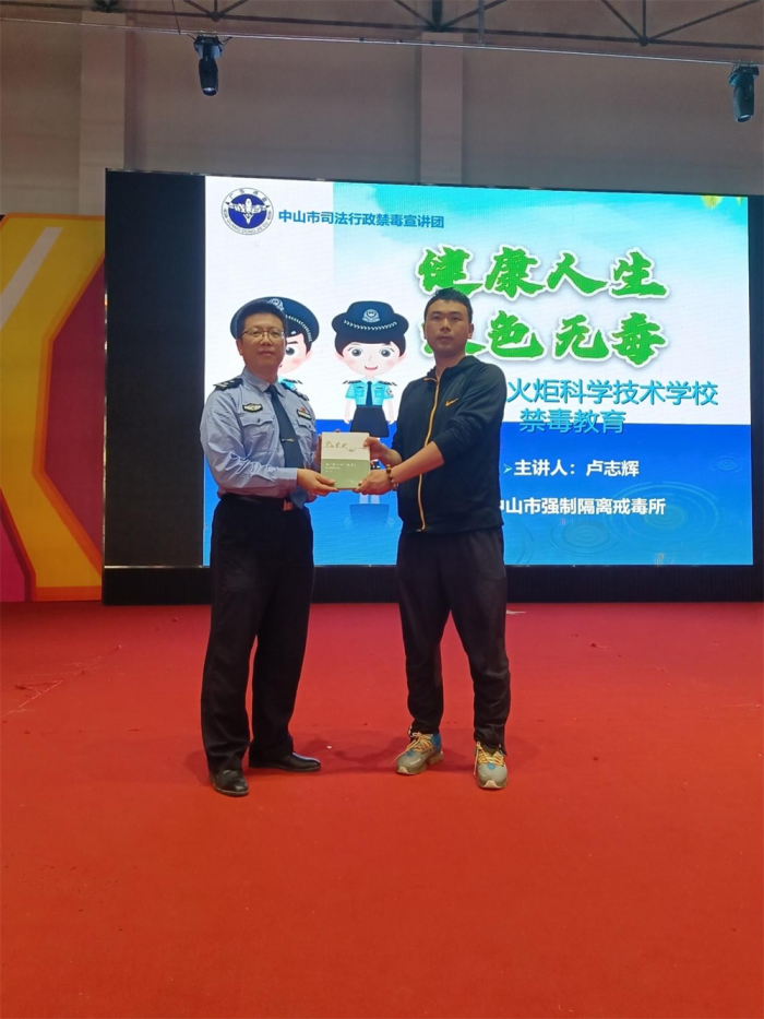 學(xué)校是毒品預(yù)防教育的主陣地,學(xué)生是青少年毒品預(yù)防教育的重中之重。為了讓學(xué)生們充分了解毒品危害及禁毒方面的知識,3月9日,中山市火炬科學(xué)技術(shù)學(xué)校聯(lián)合中山市強制隔離戒毒所開展禁毒講座,邀請了中山市強制隔離戒毒所代表盧志輝警官為師生代表作禁毒第一課宣講。盧志輝警官從專業(yè)的角度,以通俗易懂、圖文并茂的形式,通過生動鮮活的案例和視頻,深入分析青少年吸毒的原因,向同學(xué)們詳細(xì)介紹了毒品的種類,講解了毒品的危害、青少年如何遠(yuǎn)離毒品、如何識別毒品等知識,讓同學(xué)們樹立“珍愛生命,遠(yuǎn)離毒品”的觀念,杜絕毒品侵害,筑牢校園“防毒墻”。盧志輝警官還帶領(lǐng)同學(xué)們一起宣誓:學(xué)會拒絕毒品,建設(shè)無毒校園!堅決與毒品作斗爭!從我做起以抵制毒品為榮,以吸毒販毒為恥! 潔身自愛,決不沾毒!最后,盧志輝警官代表戒毒所,向?qū)W校捐贈禁毒圖書,給全校師生帶來了寶貴的禁毒知識。