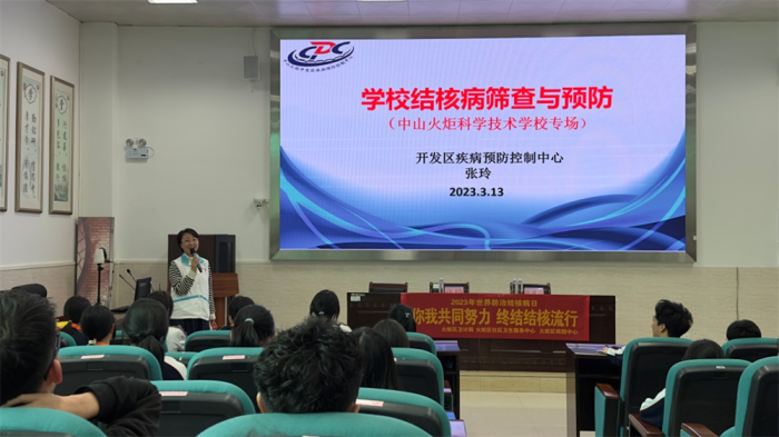 為進(jìn)一步做好校園結(jié)核病預(yù)防健康教育工作,中山市火炬科學(xué)技術(shù)學(xué)校于3月13日下午,在開(kāi)發(fā)區(qū)校區(qū)報(bào)告廳舉辦了結(jié)核病防治知識(shí)宣傳專(zhuān)題講座,約180名高二級(jí)學(xué)生和部分老師參加此次培訓(xùn)。