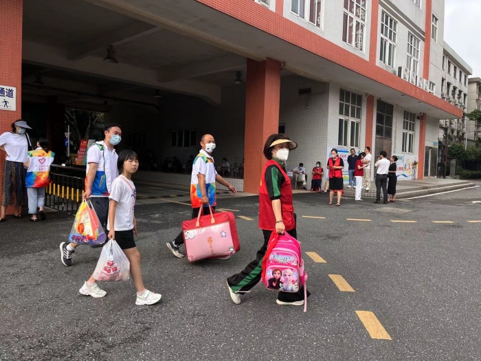 烈日當(dāng)空,高溫炙人,黨員志愿者的熱情堪比炎炎烈日。雖然衣服被汗水浸濕了一遍又一遍,但看到每一位學(xué)生能快速得到妥善安置,大家臉上都露出欣慰且幸福的笑容。