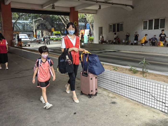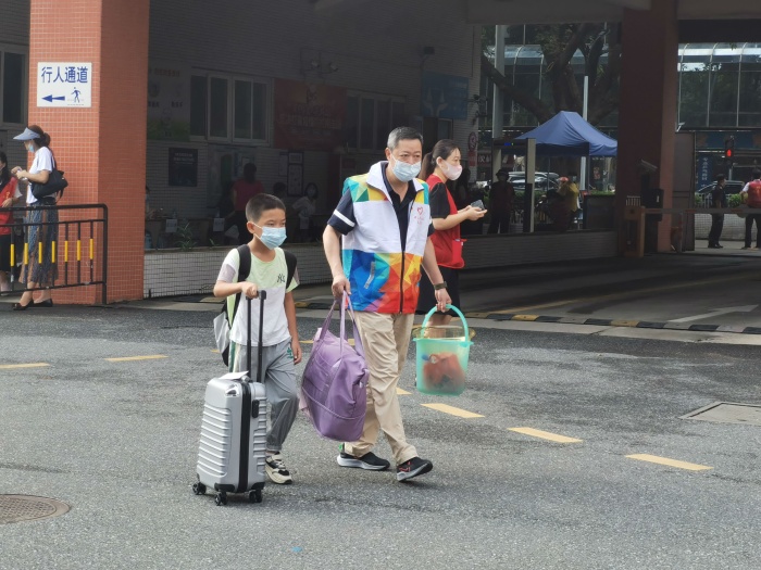 清晨7:45分,黨員志愿者們?cè)缭鐏淼叫iT口,為返校學(xué)生提供“一站式”服務(wù)。黨員志愿者在校門口負(fù)責(zé)引導(dǎo)學(xué)生有序排隊(duì)、測(cè)溫入校園,并引導(dǎo)學(xué)生至各班主任處報(bào)到,同時(shí)協(xié)助搬運(yùn)行李送至宿舍,全程一站式引導(dǎo)學(xué)生快速完成入校。