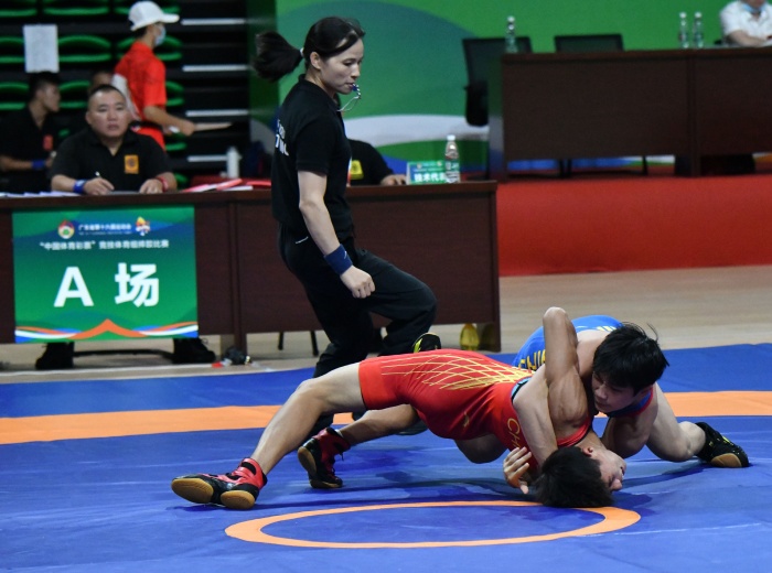 8月14日,廣東省第十六屆運動會競技體育組古典摔跤比賽進入第二天的爭奪。在男子乙組60公斤級的比賽中,嚴日豪以絕對的實力,為中山隊再奪一金。