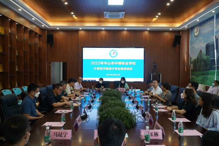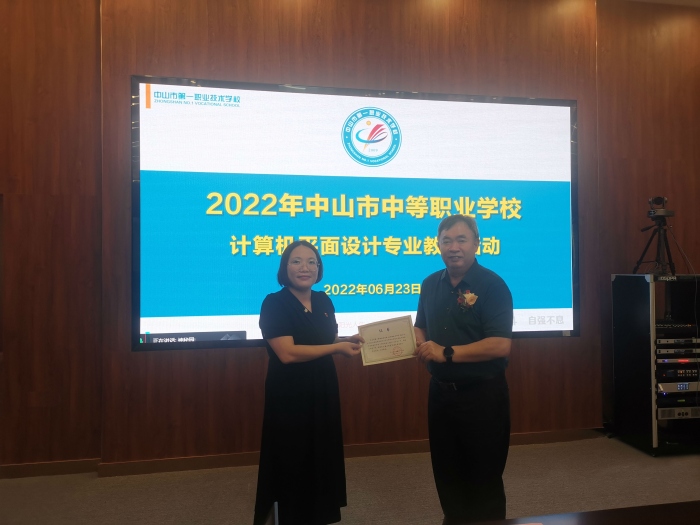 6月23日上午,由市教研室主辦的中山市中職學校計算機平面設計專業(yè)教學研討活動在中山一職舉行。本次活動包括一場畢業(yè)展、一節(jié)公開課、一場研討會,旨在展示中山一職2020級畢業(yè)生學習成果,交流碰撞,探討“教學做一體”相融合的教學與成果展示模式在中職學校計算機平面設計專業(yè)中的應用。教研員陳建國老師率領全市中職學校計算機平面設計專業(yè)骨干教師出席活動,中山一職副校長章利建,教務處主任林輝,教務處副主任何彩梅、侯敬熙,新光源技術部部長黃娟,中山市印藝快線數(shù)碼圖文有限公司經理李明杰,六盤水市水城區(qū)職業(yè)技術學校三位跟崗教師,及部分家長、學生參加了活動。
