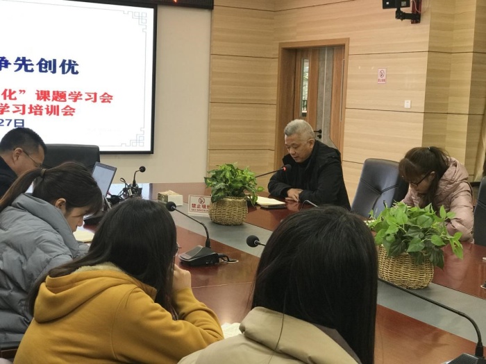 緊接著鄧主任以“現(xiàn)代君子文化”為內(nèi)核的學校文化體系構建研究為教學藍本,重點為與會老師講解了該課題研究的目的及意義,鄧主任指出:目前關于學校文化建設的研究,多數(shù)在物質(zhì)文化和制度文化上,但對于學校文化的精神文化和課程文化較系統(tǒng)、全方位進行研究的少,學校文化體系建設案例和成果較少,學校君子文化體系構建的更是甚少。所以本課題以“現(xiàn)代君子文化”為內(nèi)核的學校文化體系構建研究是對學校文化建設的實踐與豐富。構建好學校君子文化體系,將現(xiàn)代君子內(nèi)涵和要求在校園隨時隨地顯現(xiàn),在德、智、體、美、勞“五育”各個方面中滲透,促進學生主體性的發(fā)展,真正滿足學生與教師發(fā)展的需要,促進學校品牌特色形成,是本課題重要的實踐價值和意義。最后副校長董偉文鼓勵廣大班主任教師人人參與課題,注重問題導向,聚焦課堂,瞄準課堂教學質(zhì)量,加快專業(yè)發(fā)展,帶出屬于自己特色的班集體。