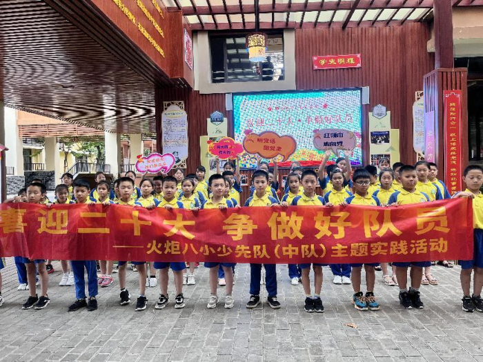 踏尋黨的足跡,尋找革命之火。為了迎接黨的二十大的到來,引領(lǐng)少先隊(duì)員們學(xué)黨史、聽黨話、跟黨走,爭(zhēng)做新時(shí)代的好隊(duì)員,6月27日至7月1日,在火炬八小黨支部和少先大隊(duì)部的指導(dǎo)下,學(xué)校少先隊(duì)各中隊(duì)開展“喜迎二十大 爭(zhēng)做好隊(duì)員”主題實(shí)踐活動(dòng)。少先隊(duì)員們?cè)谥嘘?duì)輔導(dǎo)員的帶領(lǐng)下,走進(jìn)火炬八小黨史學(xué)習(xí)教育基地,學(xué)習(xí)黨百年崢嶸歲月的光輝歷史。