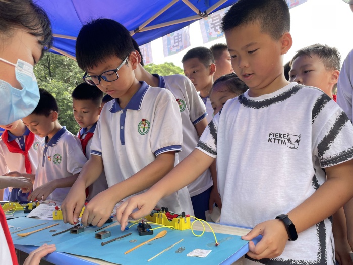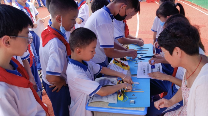 科學(xué)體驗活動則在5月31日下午開展,全校1332名學(xué)生參與到本次活動當(dāng)中。活動現(xiàn)場設(shè)置了一系列蘊含科學(xué)知識的趣味活動,“穿越火線、點亮小燈泡、觀察動植物細(xì)胞、它能導(dǎo)電嗎、滑翔機大比拼……”學(xué)生們沉浸于科學(xué)體驗活動的同時,也收獲了許多的科學(xué)小知識,活動場上縈繞著孩子們的歡聲笑語。
