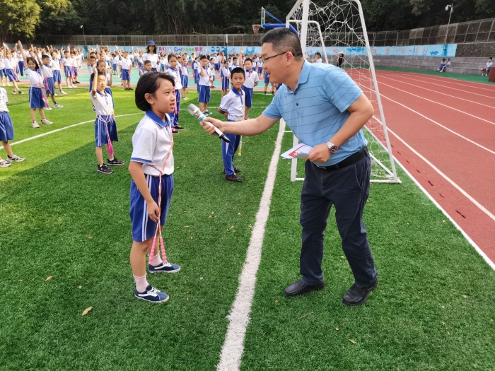 當(dāng)天下午,鄭康樂副校長利用大課間時間,開展垃圾分類的小知識互動問答活動。有趣的互動環(huán)節(jié)吸引了同學(xué)們,大家紛紛舉手回答問題,讓同學(xué)們對垃圾分類和環(huán)保工作的認(rèn)識得以加深,并要求同學(xué)們把垃圾分類的知識帶回家庭,通過“小手牽大手”,帶動家庭、社會共同搞好垃圾分類,提高環(huán)保意識,養(yǎng)成良好習(xí)慣。
