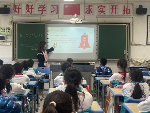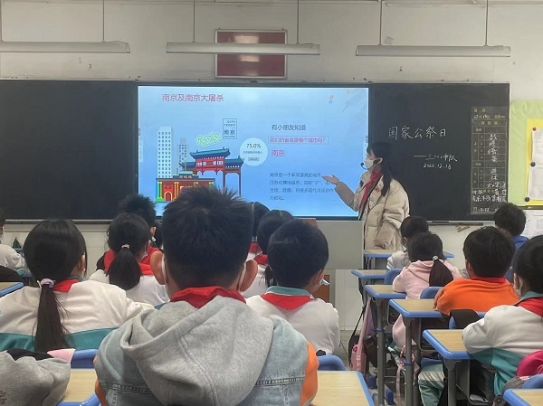 當(dāng)天,全校開展了主題班隊(duì)課活動。中隊(duì)輔導(dǎo)員通過視頻、圖文向?qū)W生講述“南京大屠殺”的歷史,闡述設(shè)立國家公祭日的意義,激勵全體少先隊(duì)員努力學(xué)習(xí),立志成才,不斷增強(qiáng)社會責(zé)任感和歷史使命感。隊(duì)員們目睹中國人民受苦的慘烈的畫面,難以抑制內(nèi)心的悲痛,很多隊(duì)員熱淚盈眶。大隊(duì)輔導(dǎo)員黃老師動容地號召少先隊(duì)們:“我們一定不要忘記歷史,尤其是國家的苦難史。我們要以史為鑒,努力學(xué)習(xí),長大后成為有用的人,把祖國建設(shè)得更加強(qiáng)大,不讓屈辱重演,讓人民過上幸福美好的生活?!备靼噍o導(dǎo)員也號召隊(duì)員們勿忘歷史,努力學(xué)習(xí),努力成為祖國的建設(shè)者和接班人。