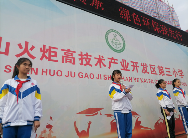 當天早上,三小舉行了以“雷鋒精神我傳承,綠色環(huán)保我先行”為主題的國旗下講話。在一千多名師生的注視中,五星紅旗徐徐升起。當五星紅旗到達旗桿的頂端,六(2)班的同學(xué)唱起了《學(xué)習(xí)雷鋒好榜樣》,嘹亮的歌聲飄到校園的每一個角落,也飄進了每一個孩子的心中。六(2)班的學(xué)生代表作的國旗下講話更是內(nèi)容充實,情感真摯,贏得了臺下一次又一次的掌聲。