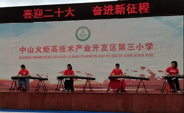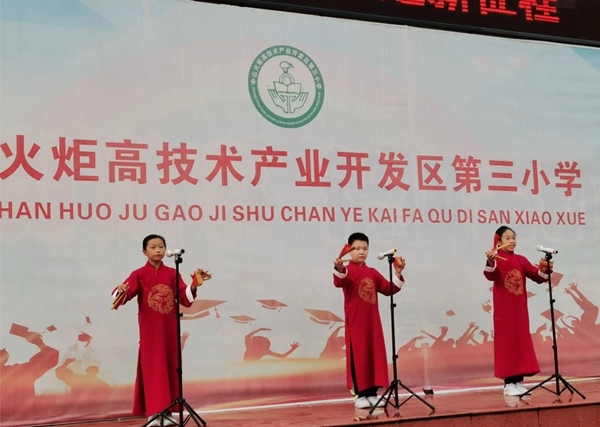 生在紅旗下,長在春風(fēng)里。少先隊(duì)員國旗下的快板表演《中國人》和古箏表演《大中國》,詮釋了火炬三小莘莘學(xué)子對黨和祖國的無盡深情。