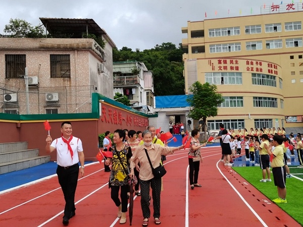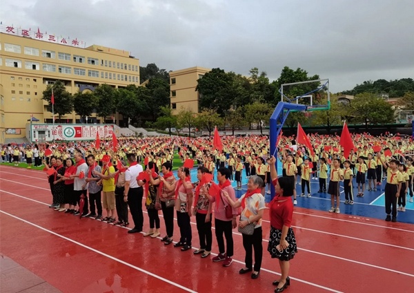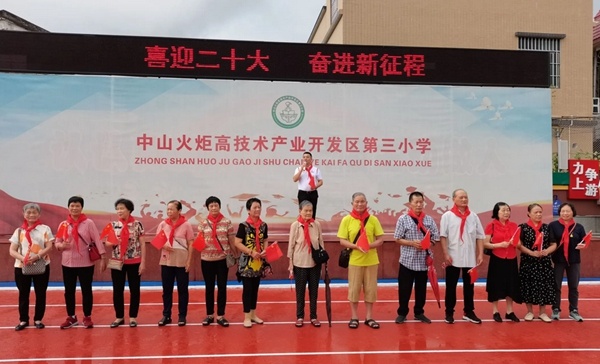 一朝沐杏雨,一生念師恩。在慶祝中華人民共和國成立73周年之際,火炬三小迎來了十幾位退休老教師的來臨,他們在這里培育了一代又一代的社會主義接班人,為祖國各個行業(yè)默默地培養(yǎng)人才。當(dāng)少先隊(duì)員們將鮮紅的紅領(lǐng)巾再次佩戴在他們胸前,大聲地說著:“老師,您好!”,所有老師心中涌起了幸福的浪花。