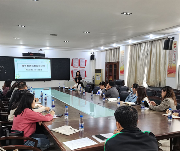來自火炬區(qū)第三小學的梁思慧老師則進行了青年教師技能比賽的經(jīng)驗分享。她提到:教師應該熟悉多階段的教材,充分了解學情。同時,要時常學習儲備教育理論知識,為合理進行教學設(shè)計做有力支撐。