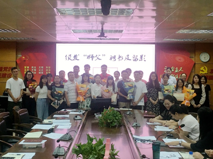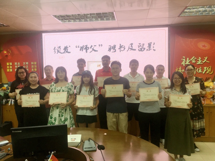 精簡(jiǎn)的開(kāi)場(chǎng)致辭后,何主任帶領(lǐng)參會(huì)教師快速瀏覽新鮮出爐的師徒名單,并宣布52位教師在與會(huì)領(lǐng)導(dǎo)及教師的見(jiàn)證下正式結(jié)為師徒。蔡校長(zhǎng)和康校長(zhǎng)分為各學(xué)科師父以及各班主任師父頒發(fā)了聘書(shū)。緊接著,師徒互贈(zèng)結(jié)對(duì)禮物。徒弟贈(zèng)予師父鮮花以表達(dá)虛心求教與尊師敬師;師父回贈(zèng)徒弟精美的筆記本,對(duì)徒弟今后的教學(xué)工作寄以鞭策與鼓勵(lì)。
