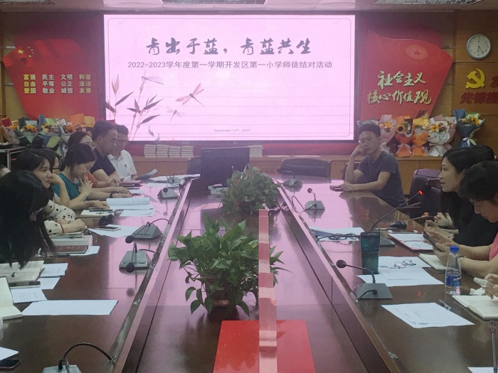 秋風(fēng)起兮白云飛。為引領(lǐng)新學(xué)年新教師正確把握學(xué)校辦學(xué)理念,學(xué)會(huì)有效構(gòu)建課堂及駕馭課堂,同時(shí)演繹好班主任角色,穩(wěn)妥管理班級(jí)事務(wù),在教學(xué)路上穩(wěn)步起飛,開(kāi)發(fā)區(qū)第一小學(xué)于9月21日下午開(kāi)展了2022-2023學(xué)年度第一學(xué)期“青出于藍(lán),青藍(lán)共生”師徒結(jié)對(duì)活動(dòng)。活動(dòng)由何思行副主任主持。蔡長(zhǎng)青校長(zhǎng)、康樂(lè)副校長(zhǎng)、部分行政、各年級(jí)組長(zhǎng)及各學(xué)科組長(zhǎng)以及參加師徒結(jié)對(duì)的師父與徒弟出席了本次活動(dòng)。