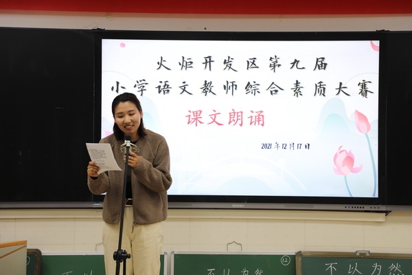 大賽的第二項(xiàng)是朗誦。通過短短的5分鐘時(shí)間準(zhǔn)備,選手們將文章讀得字正腔圓、準(zhǔn)確流利,朗讀節(jié)奏把握得當(dāng),對(duì)作品的理解和詮釋很到位,展現(xiàn)了教師們較高的普通話水平和朗讀技巧。