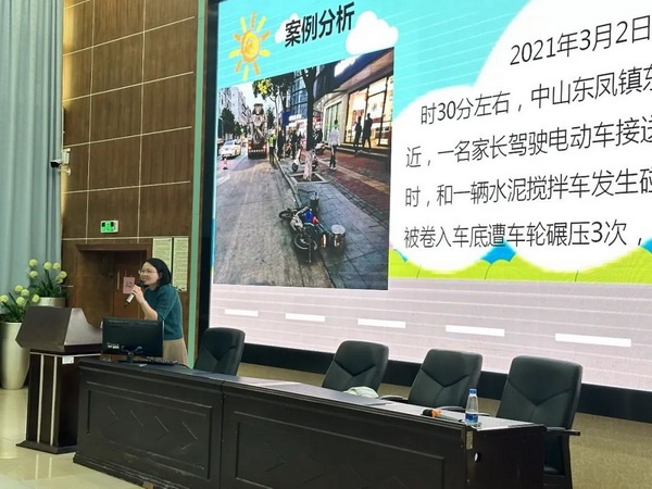 活動(dòng)中,程老師根據(jù)同學(xué)們的年齡、生活片區(qū)、出行方式等特點(diǎn),結(jié)合日常交通安全的實(shí)際情況,用具體的事例深入淺出地為同學(xué)們講解了道路安全方面的知識(shí)。她從“行走安全”“騎行安全”“乘車安全”和“注意盲區(qū)”四個(gè)方面入手,引導(dǎo)同學(xué)們更好地遵守各項(xiàng)交通規(guī)則,不斷提高自我保護(hù)能力。程老師通過視頻和圖片向同學(xué)們展示了因不遵守交通規(guī)則而發(fā)生的重大交通事故場景,給同學(xué)們留下了深刻的印象。