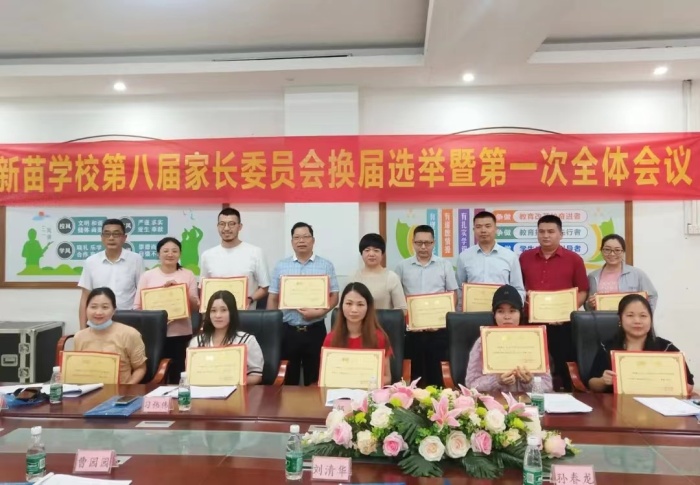 通過舉手表決,吳錫東、許愛民二位家長分別當(dāng)選為新苗學(xué)校第八屆家長委員會會長和秘書長。鄒校長和段校長為校級家委會委員頒發(fā)聘書。