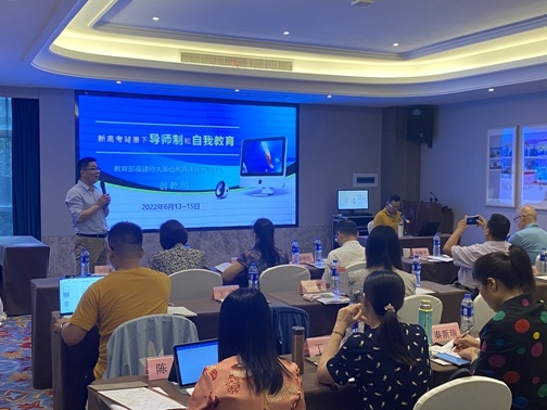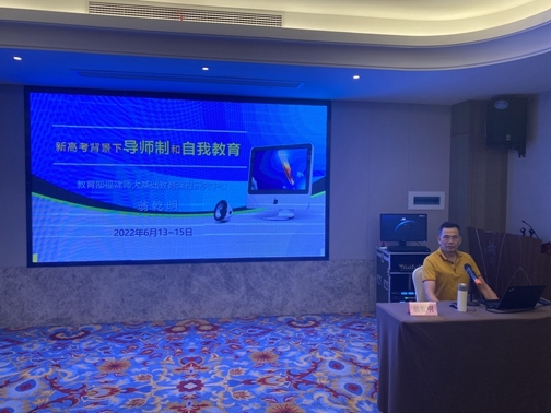 第二項(xiàng)議程:由教育部福建師大基礎(chǔ)教育課程研究中心副主任、特級(jí)教師翁乾明主講標(biāo)題為《新高考背景下的導(dǎo)師制和自我教育》的專題講座。翁主任曾任福建師大附屬中學(xué)校長(zhǎng),既有豐富的一線教學(xué)經(jīng)驗(yàn),又有高屋建瓴的理論儲(chǔ)備。講座上,翁主任首先介紹了“導(dǎo)師制”,他說導(dǎo)師制是在新高考背景下為加強(qiáng)對(duì)學(xué)生心理成長(zhǎng)的指導(dǎo)而提出的,導(dǎo)師制有三項(xiàng)硬任務(wù):學(xué)習(xí)成長(zhǎng)指導(dǎo)、生涯規(guī)劃指導(dǎo)、身心發(fā)展指導(dǎo),完成任務(wù)最重要的方法是對(duì)學(xué)生平等對(duì)待。接著,翁主任重點(diǎn)談對(duì)學(xué)生的自我教育,自我教育是基于自我覺醒、兼顧社會(huì)需要、立足自覺自律、認(rèn)識(shí)自己、喚醒自己、改變自己、經(jīng)營(yíng)自己,成就自己的過程。翁主任強(qiáng)調(diào)教育最重要的是要解決根的問題,而教育的“根“就是促進(jìn)學(xué)生精神成長(zhǎng)。啟示老師要加強(qiáng)自我教育,要努力做個(gè)“人中人”,永遠(yuǎn)與學(xué)生一同成長(zhǎng),要活出意義,活出價(jià)值!翁主任風(fēng)趣幽默、深入淺出,在場(chǎng)教師都受益匪淺。