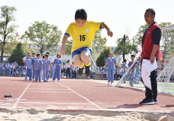 據(jù)了解,本次運動會分四個組進行比賽,分別是一二年級組、三四年級組、五六年級組和初中組。為節(jié)儉辦會,本屆運動會沒有設開幕式。一二年級組的比賽項目有拍球和跳繩;三至六年級有60米、400米、4X100米接力、跳高和跳遠等項目;初中組有100米、800米、4X100米、跳高和跳遠等項目。雖然比賽項目不算太豐富,但對于久未參賽的學生來說,不管成績?nèi)绾?,這就是一個快樂的節(jié)日。比賽現(xiàn)場,運動員、志愿者、裁判員,全身心投入到比賽中,都在為運動員盡情地鼓掌和吶喊,大家充分展現(xiàn)出團結(jié)進取、蓬勃向上的精神風貌,全體同學自始至終以班集體為重,關(guān)心、關(guān)注本班的比賽和成績。田徑場上當天的比賽主要由三四年級的學生在跑步、跳高、跳遠等項目展開較量,比賽現(xiàn)場,學生們情緒高漲,歡呼聲不斷。有的同學在跑步比賽中跌倒了又爬起來繼續(xù)比賽,直到?jīng)_向終點,運動員在比賽場上的這種精神感染了所有在場觀看的師生們,大家紛紛為她們送出鼓勵的掌聲。體育競技并不只是為了成績,更重要的是展示永不放棄的精神。