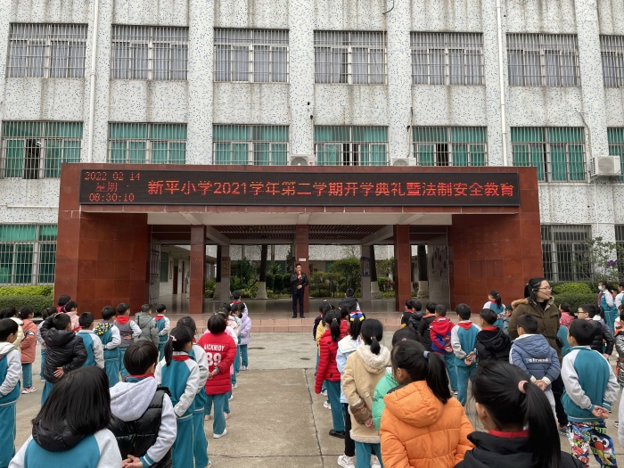 新學期,新起點,新氣象。進入校園,首先映入眼簾的是老師和禮儀隊員們的笑臉,2022年2月14日,新平小學迎來了開學典禮。