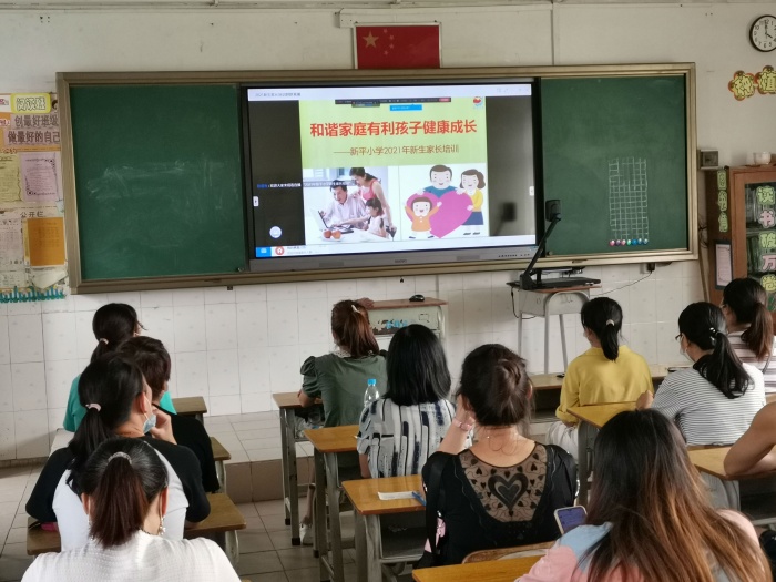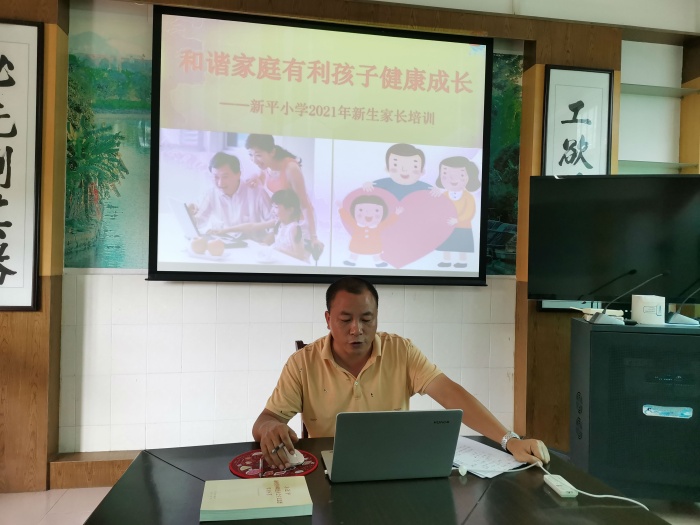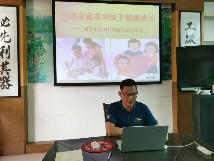 此前,學(xué)校行政領(lǐng)導(dǎo)班子對會議形式、會議時間、會議內(nèi)容提出具體的要求。在大家的精心準(zhǔn)備下,新平小學(xué)線上線下相結(jié)合的家長會模式正式開始了。這次開會的主題是:《和諧家庭有利孩子健康成長》。主會場設(shè)置在會議室,參加人員有陸銳勛校長、湯斌英副校長、教導(dǎo)主任陳瑩靖、德育主任陳福有、總務(wù)主任梁兆元、大隊輔導(dǎo)員李湘穎等。分會場設(shè)置在三年級各班教室,參加人員有各班主任、各班家長等。