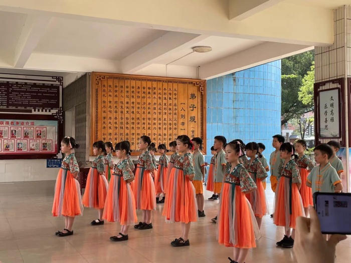 活動(dòng)伊始,督導(dǎo)組成員在校園觀看了由孩子們帶來的傳統(tǒng)文化節(jié)目表演,有孩子在大課間帶來輕柔的扇子舞,有吟誦社團(tuán)帶來膾炙人口的《三字經(jīng)》《論語》等等。