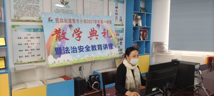 沐浴著冬日的暖陽,打包成長,滿載而歸。為了給美好的學(xué)期畫上圓滿的句號,讓同學(xué)們度過一個快樂、平安、愉快的寒假假期,根據(jù)疫情防控工作要求,1月15日,民眾街道育才小學(xué)以實(shí)時釘釘直播的形式舉行了2021-2022學(xué)年度上學(xué)期散學(xué)禮暨法治安全教育講座。