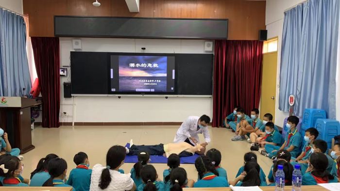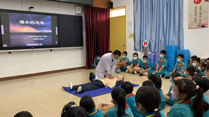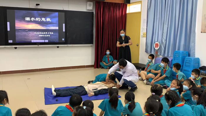 天氣逐漸炎熱,暑假即將到來,青少年溺水事故進(jìn)入易發(fā)期、高發(fā)期。為進(jìn)一步做好校園防溺水宣傳教育工作,增強(qiáng)學(xué)生防溺水安全意識(shí),有效防范學(xué)生溺水事故的發(fā)生,2022年6月30日下午,民眾醫(yī)院急診科醫(yī)生在走進(jìn)育才小學(xué),為師生講解防溺水安全教育知識(shí)并現(xiàn)場(chǎng)進(jìn)行了培訓(xùn)。