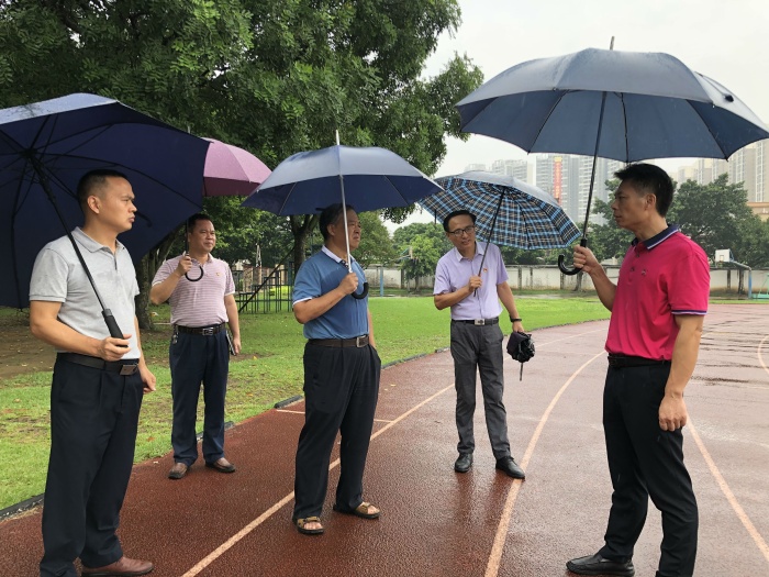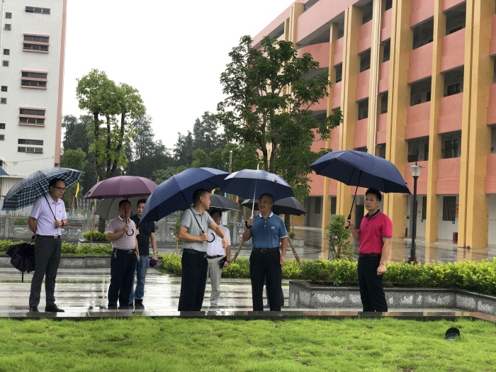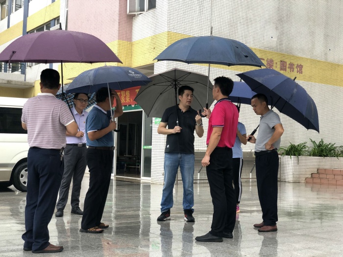 9月15日上午9時,南頭鎮(zhèn)黨委委員薛焯明,鎮(zhèn)宣傳辦公室(教體文旅局)主任(局長)姚華, 鎮(zhèn)教育和體育事務中心主任謝桂華,宣傳辦(教體文旅局)綜合股股長洪愛華和鎮(zhèn)文體教育局吳劍華老師一行五人冒雨到南頭鎮(zhèn)初級中學視察并指導工作。南頭鎮(zhèn)初級中學校長盧新泉、副校長梁紅令、副校長毛賢偉和學校總務處主任李忠漢全程陪同視察。