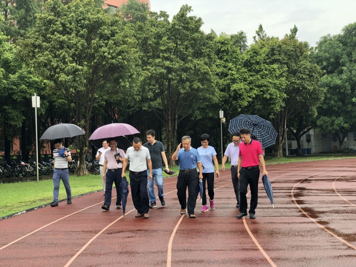 薛焯明、姚華等一行人察看了課堂、食堂、宿舍、操場等校園環(huán)境,就學校教學管理、教學環(huán)境、校區(qū)安全、食堂衛(wèi)生安全等方面進行了指導檢查,聽取了盧新泉校長關于新學期的工作思路及學校建設情況匯報,對學校開學的各項工作給予了充分肯定,察看了暑期各建設項目的完成情況并給予指導性意見。