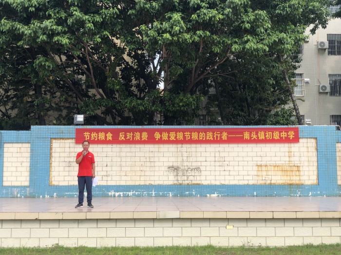 2020年9月7日星期一,在莊嚴(yán)雄壯的國(guó)歌聲中,鮮艷的五星紅旗迎著晨風(fēng)冉冉升起,南頭鎮(zhèn)初級(jí)中學(xué)全體師生舉行升旗儀式,主題為“節(jié)約糧食 反對(duì)浪費(fèi) 爭(zhēng)做愛糧節(jié)糧的踐行者”,本次會(huì)議由學(xué)校德育處主任徐思權(quán)主持。